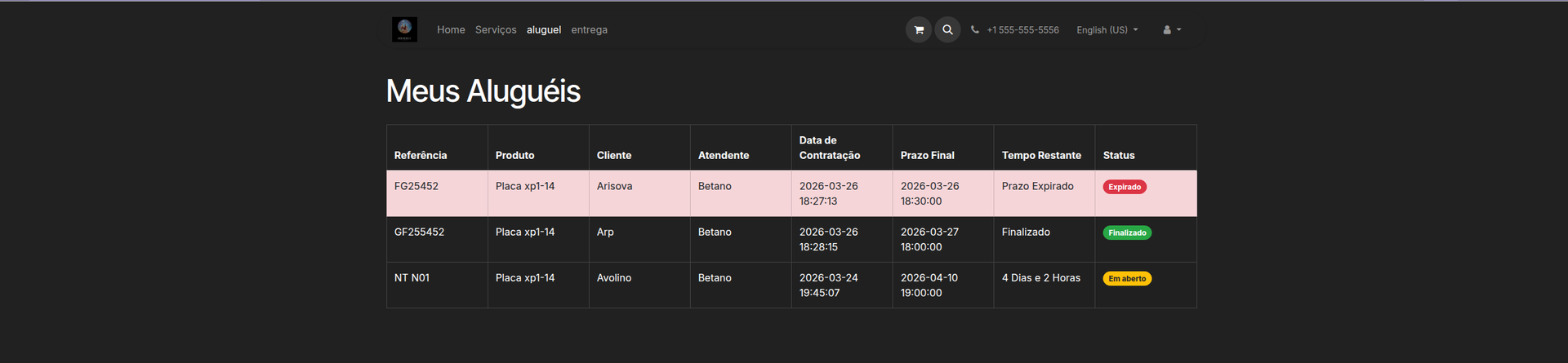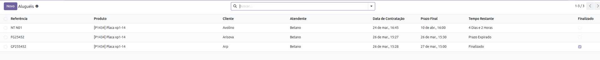 - Aluguéis finalizados